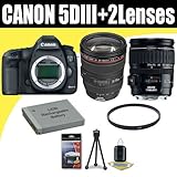 Canon EOS 5D Mark III 22.3 MP Full Frame CMOS with 1080p Full-HD Video Mode Digital SLR Camera w/ EF 24-105mm f/4 L IS USM Lens + Canon EF 28-135mm f/3.5-5.6 IS USM Standard Zoom Lens + LP-E6 Replacement Lithium Ion Battery + 72mm UV Filter + Deluxe Starter Kit Deluxe Accessory Kit