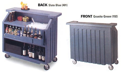 #Portable Bars are not always treated with tender loving care. This bar is so tough it doesn't need to be! Made of Polyethylene with rounded corners and heavy-duty 5-inch locking casters, it is designed to withstand abuse both indoors and out. Comes fully assembled and includes a five bottle speed rail. Features: 5-bottle speed rail. Ice sink with drain. Swivel casters with brake. Please select desired color before adding item to cart. Available colors are Black, Granite Gray, Granite Green, Granite Red, Dark Brown, Gray, Brick Red, Slate Blue, Granite Sand or Coffee Beige. Specs: Dimensions: 54"W x 46 1/8"H x 25 7/8"D. Weight: 140 lb. Casters: 5". Ships by freight truck, express shipping unavailable. Please allow 2-3 weeks for delivery.