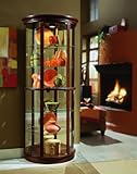 | ✚✚✚ Pulaski Pulaski Preference 32 Inch Wide Half Round Curio Cabinet Authorized Pulaski Dealer for 20858 Curio Cabinets. Welcome to the Display Cabinet, Curio Collection. The memories of family, tradition, and home inspire our Keepsakes brand. For over 50 years, Pulaski Furniture has been an innovator in providing unique storage and display cabinets for your collectibles. With over 160 styles to choose from, you will be sure to find the perfect compliment for your collection and home. The Keepsakes Signature Collection is an extension of the Keepsakes brand offering more features and unique finishes. The Insight Lighting System is a result of Pulaski's commitment to higher quality and new developments in lighting technology. With lighted shelves, the Insight Lighting System will be sure to make your collection sparkle. This demilune or half-round shaped curo cabinet is a great place to display collectibles and memorabilia. It features contemporary styling with a rich warm wood finish that makes it comfortably chic. The cabinet has adjustable shelves, an interior light and a mirrored back. Features: 5 Adjustable glass shelvesLighted interiorMirrored backGlass doorsAdjustable glides for levelingGreat place to display collectibles and memorabiliaPreference finish Dimensions: 76" H x 32" W x 17" D NOTE: Bulbs available at your local home improvement store.The Design is Mirrored Back.The Design is Lighting.The Design is Adjustable Shelving.The Style is Contemporary.