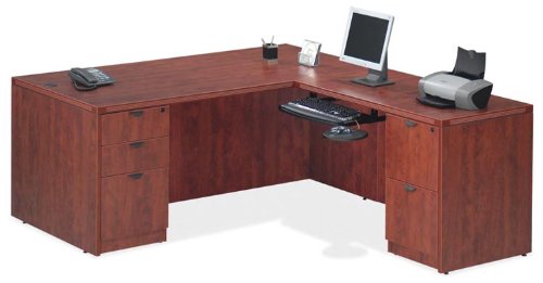 FeaturesBold, thick 1-1/2" thick work surfacesReeded edging on all work surfacesAccommodates letter or legal size filesShips ready for easy set up - pedestals ship assembledPremium grade laminates L Shaped Desk by Office Source?