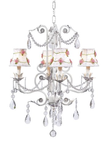 Searching for the best Pink Net Flower Chandelier Shades on the White 4-arm Valentino Chandelier; Congratulations! Check the specifications, features and feedback from customer feedback include price controls and information more satisfactory Pink Net Flower Chandelier Shades on the White 4-arm Valentino Chandelier product reviews! 20" x 25" These beautifully hand crafted, delightful chandeliers are the perfect finishing touch to any nursery, children's room, playroom - or even the bathroom! With hand crafted detailing on the center column and arms, these children's ceiling fixtures are one of a kind chandeliers that truly offer a unique look. Brighten up the old nursery, redo your kid's room, or illuminate any space in need of some charm! Chandeliers accommodate up to 45 watt bulbs without shades, 25 watt bulbs with shades.