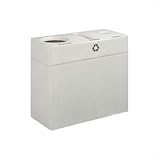 | ✚✚✚ Fiberglass Recycling Center with Three Openings Color: Soft White, Recylcing Decals: White PDQ-1037-D-Soft White-White Decals Color: Soft White, Recylcing Decals: White Features: -Fiberglass.-One-piece top lifts off for easy access.-Suitable for the recycling of paper, cans, glass, plastic and trash.-Capacity: 80 gallons. Includes: -Includes set of Black or White recycling decals. Dimensions: -Opening Dimensions: 4'' Dia.; 1.25'' W x 12'' H; 9'' Dia.-Overall Dimensions: 32'' H x 36'' W x 16'' D.