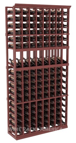 Five Star Series: 8 Column 136 Bottle Display Wine Cellar Rack in Mahogany with Cherry Stain +Satin Finish?The 8 column design is popular among collectors starting to get serious about cellaring their wine. Store almost 12 cases and display 8 of your favorite labels. Available stained or natural, features include full 12 1/4" depth bottle supports that hold the entire length of your bottles.