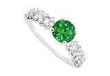 Emerald and Diamond Engagement Ring : 14K White Gold - 0.75 CT TGW Size 10.5