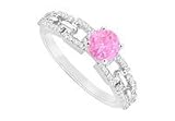 Pink Sapphire and Diamond Engagement Ring : 14K White Gold - 0.75 CT TGW Size 8