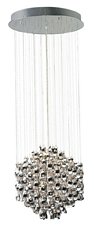 ELK Lighting 30035/18 18 Light Odyssey Large Pendant, Polished?Finish:Polished Chrome, Light Bulb:(18)40w T4 G9 120v Halogen Odyssey 18-Light Pendant Carefully faceted thirty two percent leaded crystals are set within delicately formed chrome plated metal strips in the Odyssey collection. The merging of these two materials provides a mesmerizing experience for the senses. When illuminated, light reflects amongst the crystal and displaying a rich color spectrum and visual motion while inert.