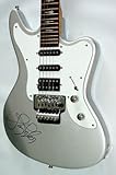 Aerosmith Steven Tyler Signed Silver Guitar PSA & Exact VideoThis is a brand new full size Autograph Pros Signature Edition guitar hand signed in person by Steven Tyler. Not only is this hand signed and guaranteed authentic from a UACC Registered Dealer, in addition to this incredible guitar you will be receiving the exact video footage which shows Steven Tyler signing this guitar. You can click the icon below to watch Steven Tyler signing this guitar. While waiting we also met Brad Whitford's son who decided to tune and jam on this very same guitar of ours! This guitar is a full size electric guitar with locking tremolo tuning, double humbuckers and single coil pickups and an AMAZING set of mother of pearl inlays featuring beautiful birds going up the neck of the guitar. Having any type of proof for autographs these days is tough but having exact video footage of Steven Tyler signing your guitar is simply PRICELESS!!! This autograph was obtained in person and comes CERTIFIED AUTHENTIC. The COA that accompanies this item is not just a plain piece of paper, it's a Certificate from a UACC Registered Dealer (Autograph Pros is UACC RD #237). This elite organization is not just a pay for membership and your in club, there are strict guidelines to become a member and a very strict Code Of Ethics which mainly revolves around ensuring only 100% authentic autographs. Item will be shipped in a manner to ensure a safe arrival. In addition to our own certification this item has since listed been examined and certified authentic by PSA/DNA and now also features their tamper resistant PSA/DNA sticker with unique # which can be looked up on their website for confirmation. The PSA/DNA # is: K64566 PSA/DNA is the world's leading third party autograph authenticator. This item has undergone their full thorough examination and was deemed hand signed and authentic. It was then marked with a dna strand, invisible to the naked eye but can be viewed using a specially calibrated infrared